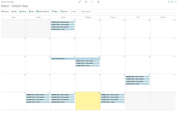 Graphical Scheduler includes a built-in filter that enables users to quickly identify specific operations. For example, users can filter on keywords like “wheel” or filter on a production order number to display only related operations.